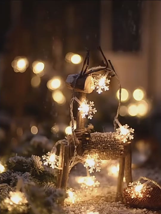 Transform any space into a winter wonderland with our Snowflake String Lights. These delicate lights feature intricately designed snowflakes that will add a touch of magic to your home or event.